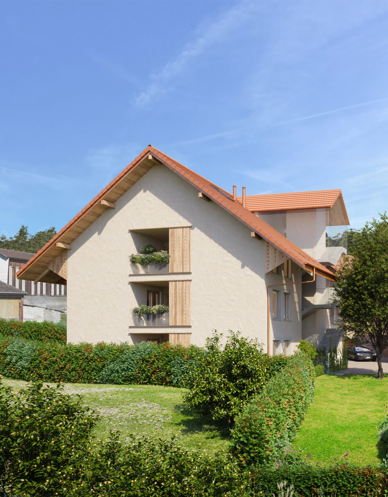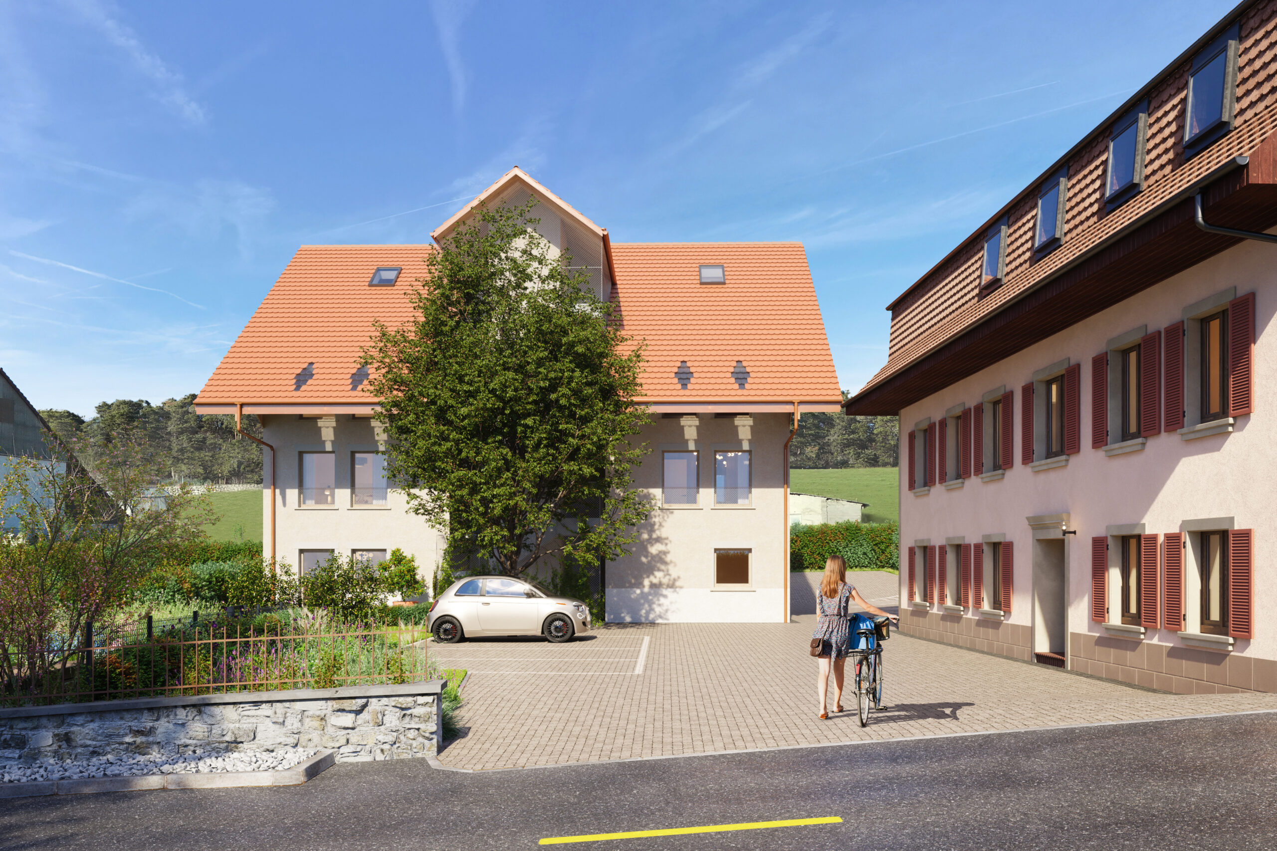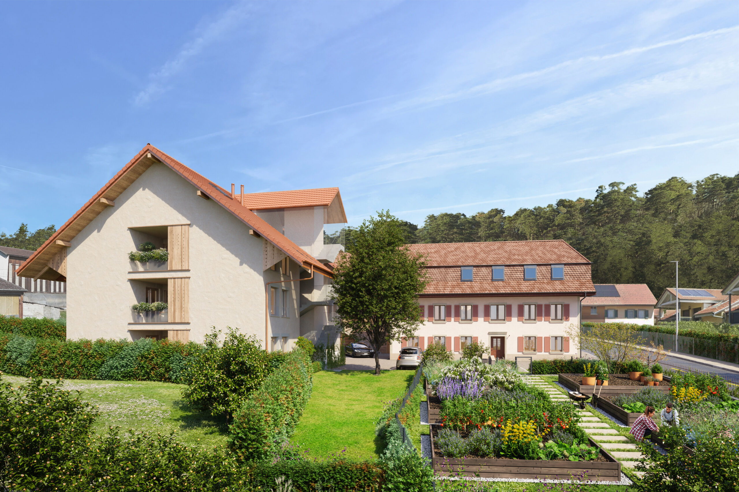 Le projet mise sur la simplicité et la durabilité. Une partie des logements prend place dans une structure existante, rénovée avec soin, tandis que les autres seront construits selon les standards actuels. L’accent est mis sur la fonctionnalité, le confort et une gestion raisonnée des ressources.